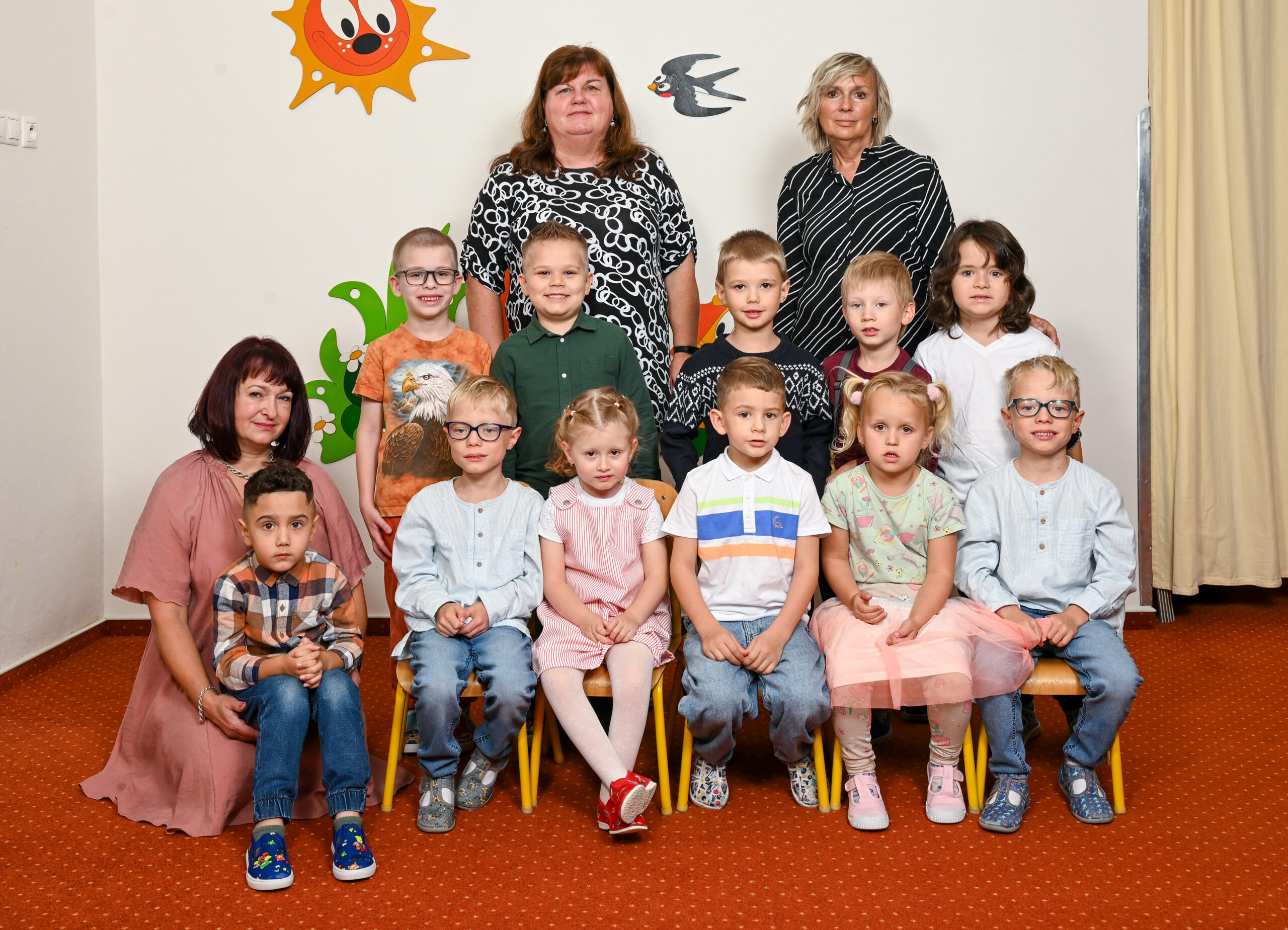 | Básnička o žabkách My jsme třída žabiček, plná kluků, holčiček. Rozhlédni se tu i tam, uvidíš, že nejsi sám.   Ráno ruku podáme si, hračku rychle vyberem si. Kluci staví bájné hrady, se vším vždycky ví si rady.   A co voní za rohem? Asi buchty z tvarohem. Holky vaří v kuchyňce, pomáhají mamince.   Před zrcadlem žádná dřina, Už to umím, to je prima! Ruce, nohy protáhneme, Na sebe se usmějeme a už je tu svačina! Usedneme kolem stolu, je nám dobře takhle spolu. xxxxxxxxxxxxxxxxxxxxxxxxxxxxxx | Zazpíváme písničku, povíme si básničku a už honem, honem ven, s klukama si zakopem.   Holky mají taky práci, houpají se pro legraci. Ale co to? Tiše! Už mi kručí v břiše.   Ve školce jím s dětmi sám a na všem si pochutnám. Každý má svůj hrníček, na mléko či čajíček. Všude kolem tomto čase, místo her teď obědvá se. xxxxxxxxxxxxxxxxxxxxxxxxxxxxxx |     Vyčistíme zoubky skvěle a teď hurá do postele. Že jsi školák, nechceš spát? Pojď si kreslit, tancovat!   Po spinkání svačinka, po svačince maminka. Že se máme všichni rádi, to my dobře víme, o všechno se kamarádsky spolu rozdělíme. xxxxxxxxxxxxxxxxxxxxxxxxxxxxxx |